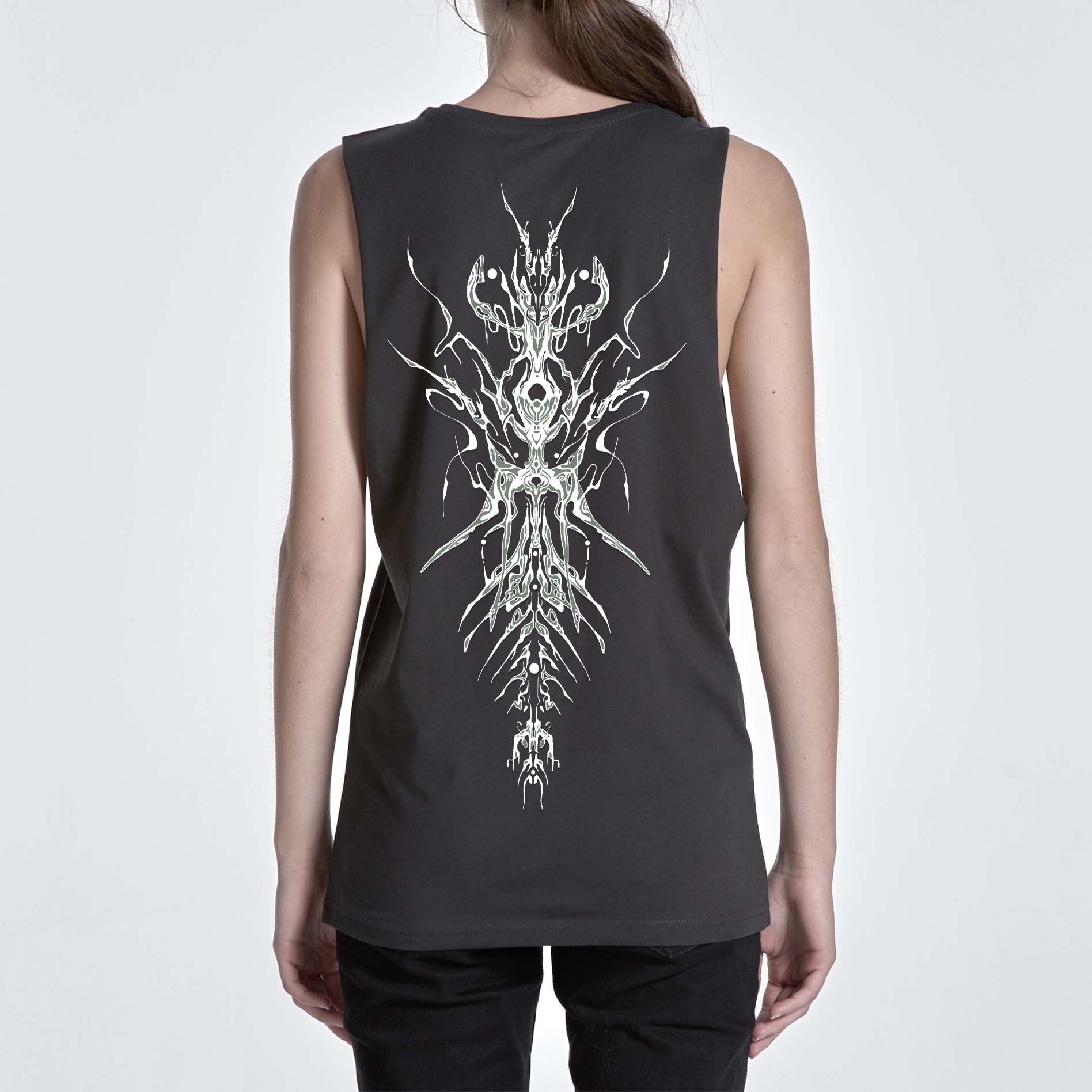 Two tone screen-print on 100% cotton singlet.